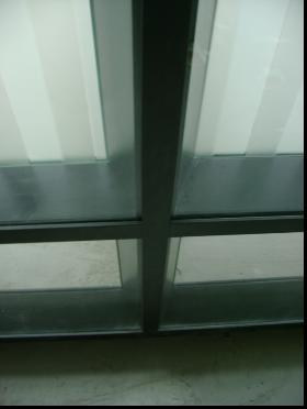 7、磨砂玻璃具有一定的透明度,在包墙、包柱的时候要注意,在做中间磨砂上下清玻的时候,上部磨砂需离地1.8米高,除非客户特色要求高度