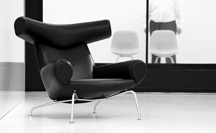 OX Chair (公牛椅)系列由丹麦著名设计师Hans J. Wegner在1960年设计的,系列包括OX Chair (公牛椅)、OX Ottoman(公牛脚踏)及其组合OX Chair and Ottoman(公牛椅&脚踏)。公牛椅系列收到毕加索作品的启发,设计了这款个性椅子。公牛椅是阳刚之气的本质,它表现出Hans J. Wegner设计少有的严肃的一面,它时尚而又实用,无论是家中还是办公场所都能安装,它让Hans J. Wegner的设计走向世界,也成为丹麦家具设计的经典之作。