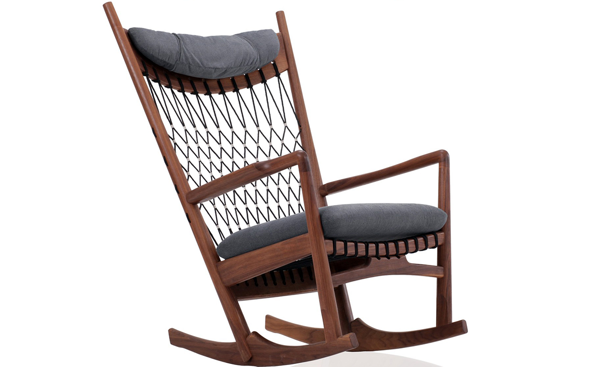 Rocking Chair(摇椅)是大师Hans J. Wegner设计的众多摇椅中的经典之作。摇椅具有简洁的线条,精准的的人体工学结构,是Hans J. Wegner在1944年为身怀六甲的妻子设计,扶手前端微微向外展开,是为让妻子方便起身。实木制成,轻便耐用,简约单纯,仍于潮流中立于不败之地,为Hans J. Wegner最受欢迎的经典作品之一。我们已经能从中感受到圈椅的影子。摇椅水曲柳制作,坐垫麻布软布(内部填充优质海绵),棉绳编织(有白色,黑色,棕红色可选)。