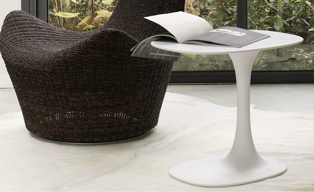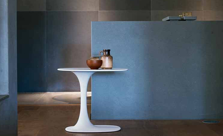 Fukasawa,优雅和严谨,他设计了一个创新的休闲桌子,可以使用到几乎任何地方,无论是客厅还是卧室。所使用的材料,白色水晶,可以创建一个大的、灵活的形状,基础和桌面是一个独特的部分。