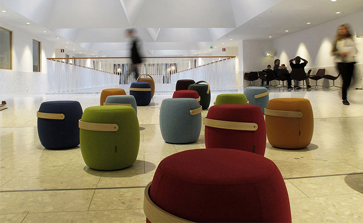 来自斯堪的纳维亚studio vision A&D的设计师和建筑师mattias stenberg设计了“carry-on”便携式小家具。这个设计的灵感来自于传统木桶的形式,设计师在桶表面包裹了一层毛绒布软垫,并搭配一个实木把手。“carry-on”有多种功能,它可用作小凳,脚凳或是摆放物品的台座。这个设计在2012年斯德哥尔摩家具/灯具展览会(stockholm furniture and light fair)上展出。同时,这个设计的展位也“greenhouse”展场的一部分,专门用来展示年轻设计师的作品。