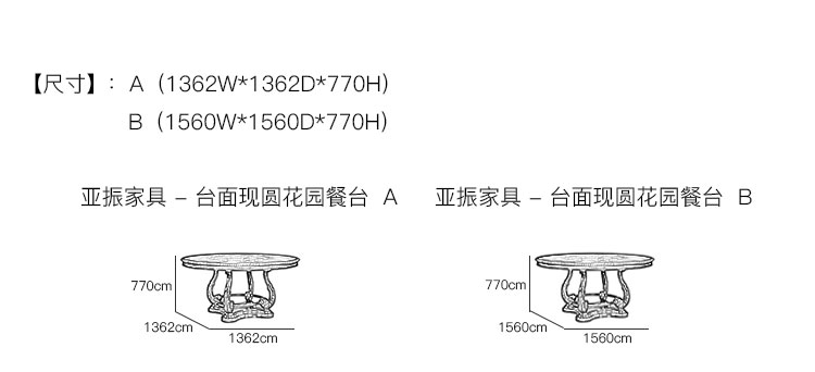 亚振家具 - 台面现圆花园餐台 产品尺寸/示意图