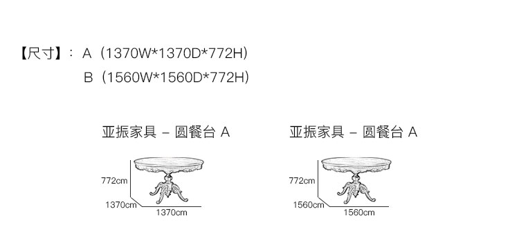 亚振家具 - 圆餐台 产品尺寸/示意图