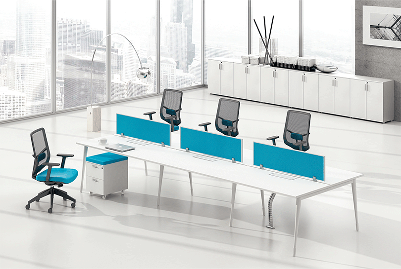 1、桌面吸音隔板,多种选择:板材、玻璃、亚克力、吸音板; 2、整齐划一、人性方便的桌面铝合金过线系统;