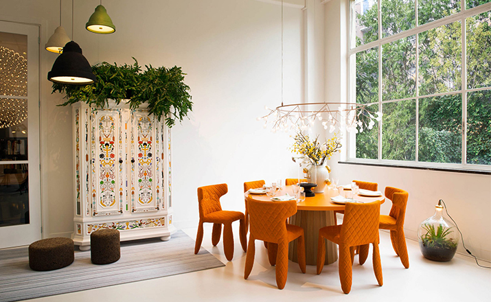 "A soft,puffy and stylish chair with an optional monster face embroidered on the backrest.The monster is a symbol of the eternal battle between opposite forces that take place in life and can be easily recognized inside ourselves,if we have the courage to open our eyes.Scary? Not at all!You forget about the monster once you sit down and enjoy the chair's comfort and softness.Marcel Wanders grew up in Boxtel,the Netherlands and graduated cum laude from the School of the Arts Arnhem in 1988.His fame started with the iconic Knotted Chair in 1996.He is now designing for the biggest European contemporary design manufacturers including Moooi of which he is also art director and co-owner.He works on architectural,interior design and consumer home appliances.His designs have been selected for the most important design collections and exhibitions around the world.Monster chair is offered with a synthetic leather upholstery in black.The chairs can be ordered with or without monster face and with or without armrests. The monster embroidery is identical in both versions."