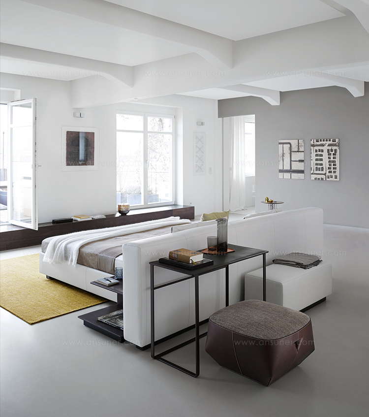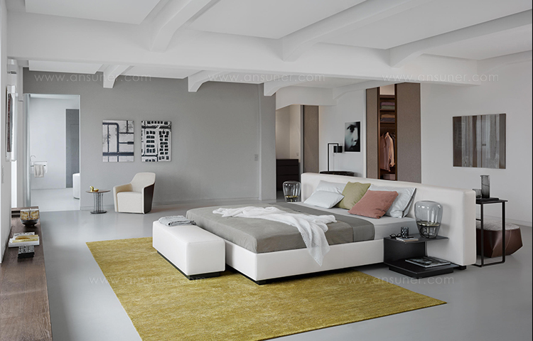 好的设计源于好的思路,Yuuto就是这样。这个软垫穿展示你睡觉的地方,自由的在一个房间里,它容纳了现代生活,为我们的衣橱、浴室、全景、为我们的私人生活的意思提供灵活的各种可能。一张软垫穿,宽敞的设计用料讲究。感觉和纯粹的美丽。