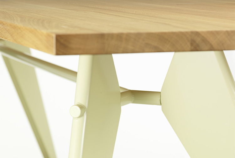 JeanProuvé的EM Table的美学外观坚持结构原则,说明其结构中的力和应力流动。 它有各种尺寸,桌面采用优质实木或HPL层压板,颜色可供选择。 长度为2000或2400毫米的顶部也有橡木贴面。 由于这种广泛的选择,每个餐厅都可以找到理想的EM Table。