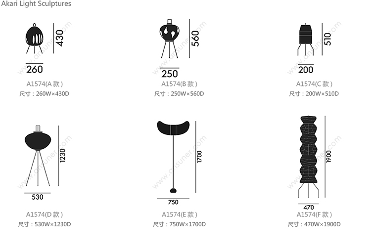 Akari Light Sculptures 系列尺寸/示意图