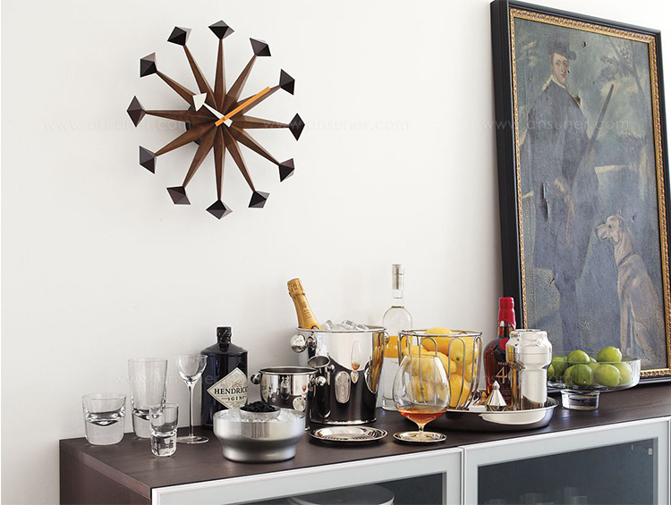 信仰进步和日益增长的经济繁荣是1950年左右美国生活方式的核心方面。一切似乎都有可能,人们努力做到“现代”。 为了将现代设计融入美国家庭,乔治·尼尔森构思了各种日常用品:灯具,钟表和其他家居饰品。 直到20世纪70年代,尼尔森办公室为家庭创造了许多不同的物品,包括泡泡灯和球钟,它们成为了本世纪中期现代设计的象征。