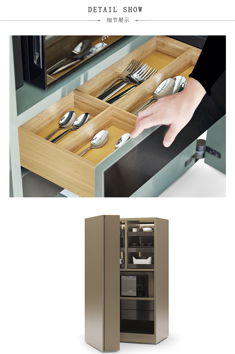顶部,侧面门,背微膨体漆面内饰早在木材表面。在技术,皮革软垫盘彩色不锈钢。上层建筑货架和抽屉的阵地。在铰链黑镍。