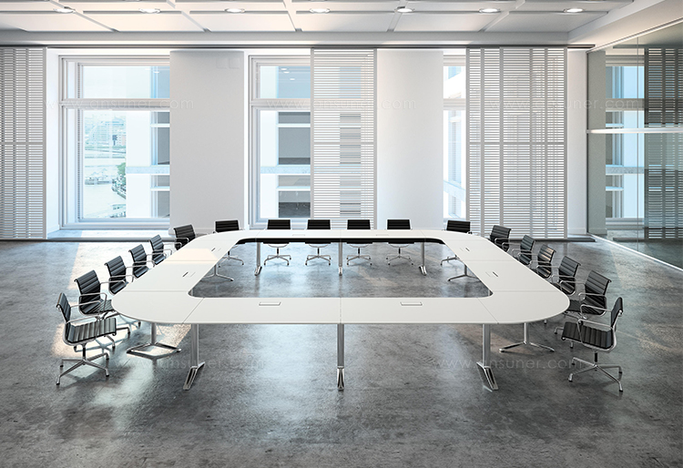 TALK会议桌的台架结构除了保证稳定性,以及最大化的腿部空间之外,它还能实现相邻两块桌面的巧妙连接。不仅如此,所有拼装和拆卸均无需任何工具,方便快捷。Talk系列应用广泛。无论会议、洽谈或培训,均可利用其高度模块化的整体结构与极强的空间“自适应性”,构建出不同的组合方式,以满足客户需求。