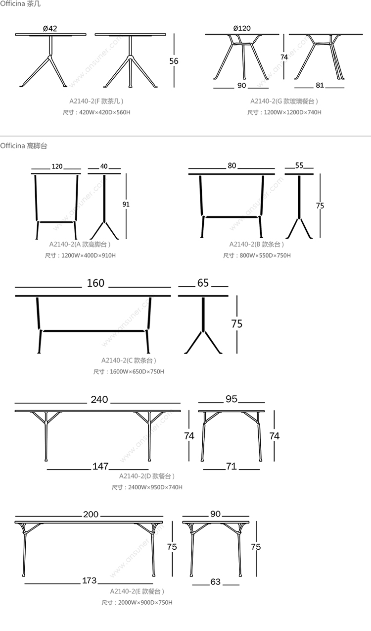 Magis Officina 系列尺寸/示意图