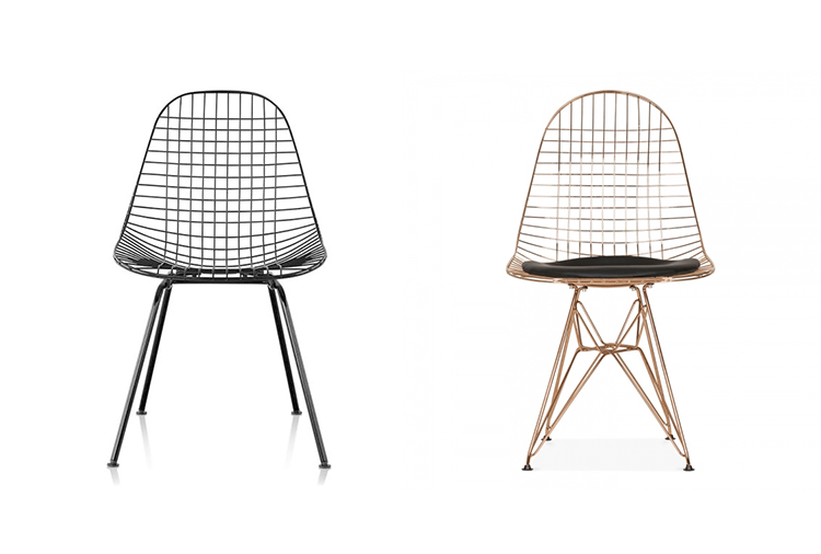 Charles & Ray Eames 1951 年發表的 Wire Chair 系列,以一片式有機網狀椅座,延伸變化出一系列不同椅腳及座墊搭配的單椅,這系列椅款輕巧透明的設計,在 60 年代可說是運用了當時最先進的技術來製作,靈感則是來自於鏤空的金屬收納籃,金屬條交織的椅座,彎曲的弧面不僅符合人體工學,在視覺上更具有穿透性。