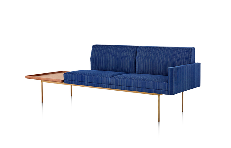 Tuxedo沙发悬挂在狭窄的钢腿上,有多种金属饰面可供选择,由于背部和(可选)臂形成的水平带,Tuxedo Sofa的轮廓低而光滑。精心设计的室内装潢覆盖了纤薄的双密度泡沫垫,进一步增强了设计的轻巧外观。每件都有各种各样的室内装潢,有或没有绗缝。