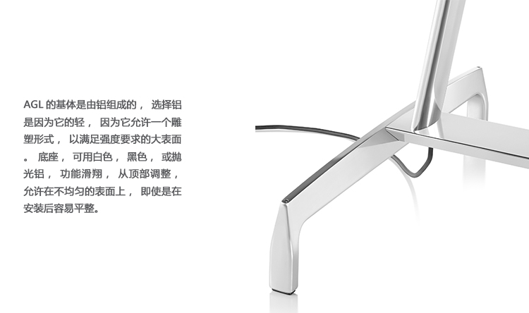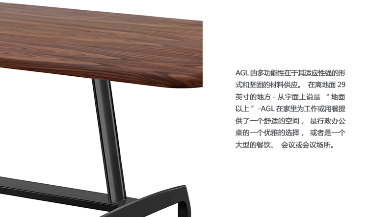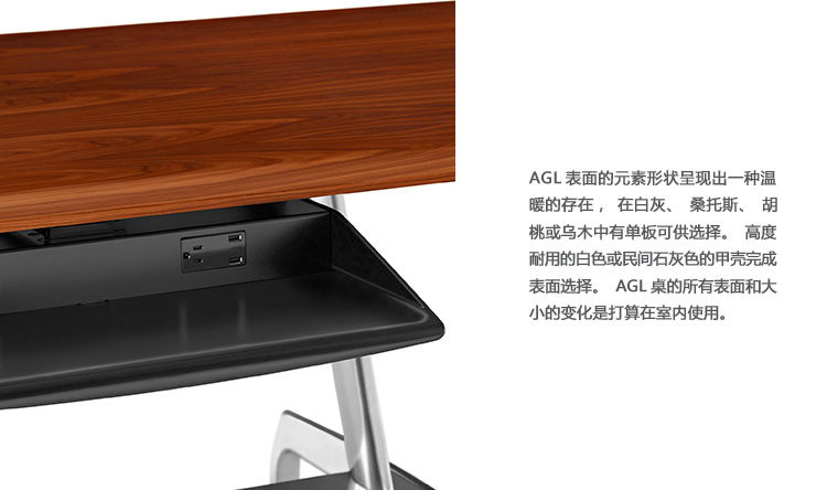 Leon Ransmeier设计的AGL桌子系列睿智亲切,引人动心,是Herman Miller Collection致力于打造兼具动态特性与恒久品质的全新委托设计的最佳典范。AGL桌子系列从航空学设计的高效性方面汲取灵感,对外形、比例和尺寸进行深思熟虑,最大限度地减少了材料的使用。