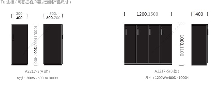 Tu 边柜 系列尺寸/示意图