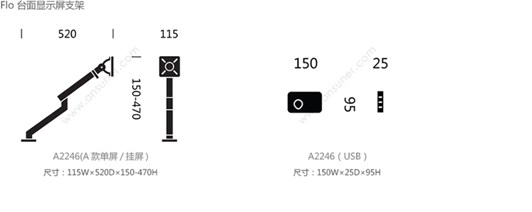 Flo 台面显示屏支架 系列尺寸/示意图