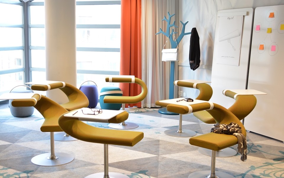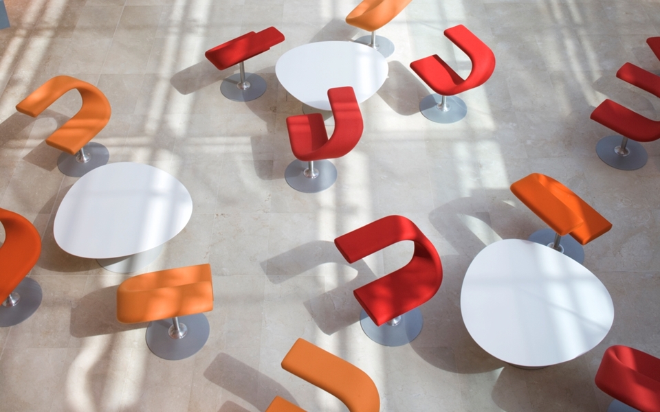 创新C-创新C是多功能旋转座椅。在创新C中,您可以随意坐着,没有靠背,没有前椅,靠背也可以用作桌子。可以在附加桌子上使用,也可以将椅子用作工作站。Innovation C可以轻松地放置在许多不同的环境中,从机场到候车室再到图书馆和学校。旋转式不锈钢立柱底座在涂银的踏板上。内部座高480 mm,总高750 mm,座宽350 mm,总宽700 mm,总深650 mm,重量kg 23。