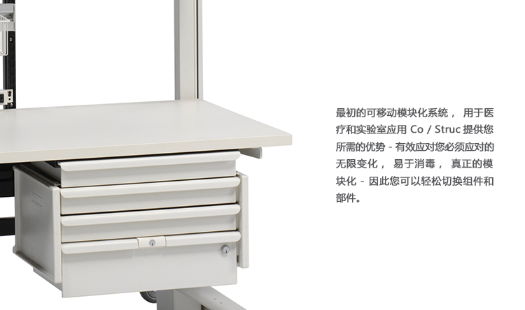 医疗保健和实验室应用的原始可移动模块化系统。Co/Struc为您提供了所需的好处——对您必须处理的无休止更改进行高效响应、易于消毒、真正的模块化——因此您可以轻松地切换组件和部件。你的投资也会有一个坚实的回报。有30年的历史记录,您可以放心,零部件将永远是可用的。