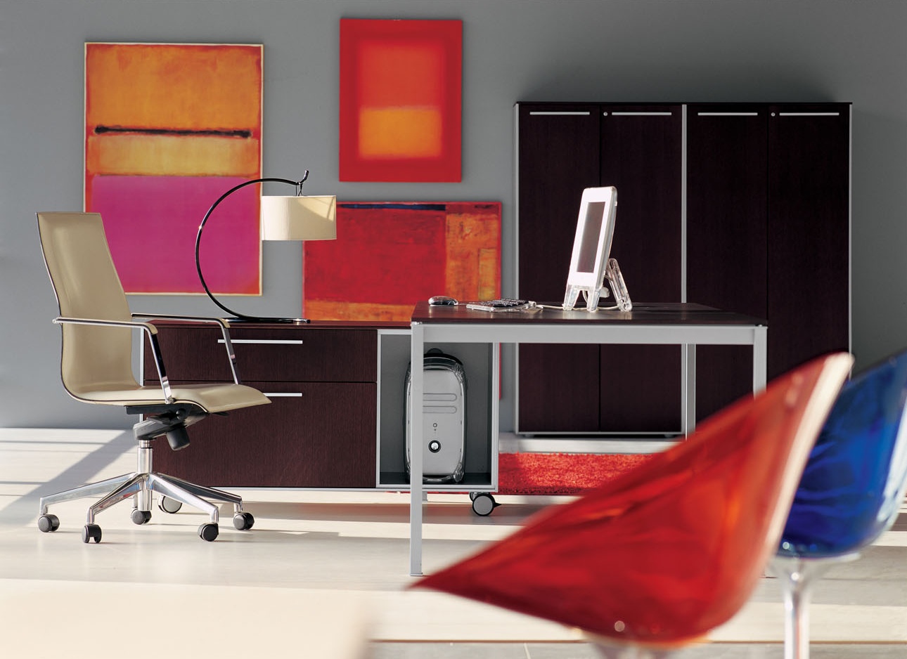 带有落地式桌面Corium 侧柜边柜/文件柜通过单一,简单的操作就可以将精致而温馨的区域转变为工作区,同时仍保持较高的美感。