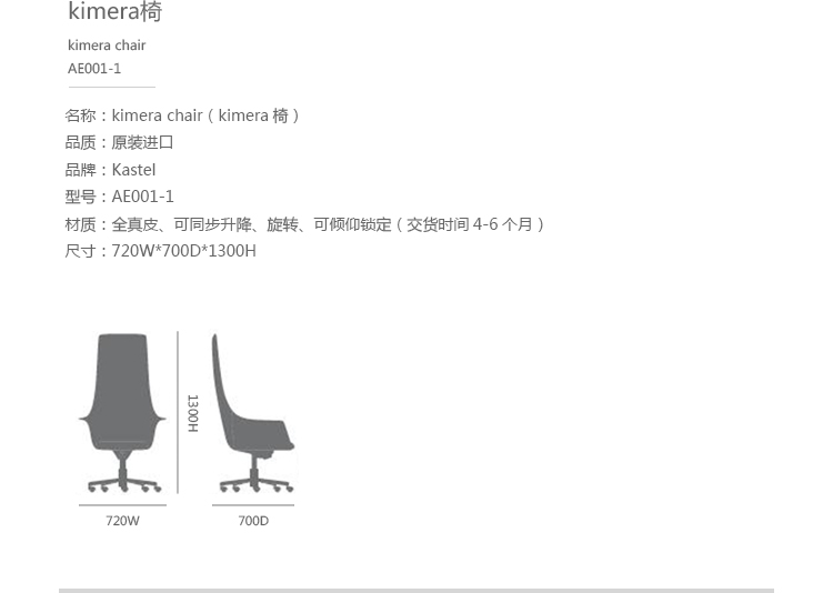 Kastel是一个在室内装饰领域极具影响力的公司,该公司具备高水平的综合生产能力,是一个充满活力的公司。Kastel公司产品多种多样,包括办公座椅,社区座椅和家庭座椅等等。Kastel在对人体工程学进行深刻研究之后,制定了现在的生产线,产品的设计以舒适为主,在生产过程中每一步都严格遵循这一宗旨,为客户提供高性能的产品,满足客户对舒适的基本要求。这也是Kastel公司的经营理念。kimera系列办公椅采用全真皮扪面、可同步升降、旋转、可倾仰锁定,符合人体工学,高档舒适,是办公,会议的理想选择。