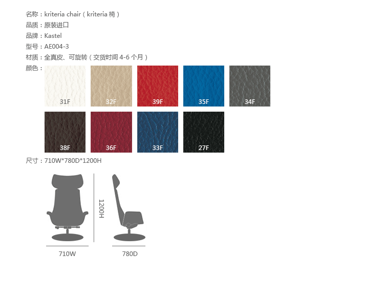 Kastel是一个在室内装饰领域极具影响力的公司,该公司具备高水平的综合生产能力,是一个充满活力的公司。Kastel公司产品多种多样,包括办公座椅,社区座椅和家庭座椅等等。Kastel在对人体工程学进行深刻研究之后,制定了现在的生产线,产品的设计以舒适为主,在生产过程中每一步都严格遵循这一宗旨,为客户提供高性能的产品,满足客户对舒适的基本要求。这也是Kastel公司的经营理念。kimera系列办公椅采用全真皮扪面、可同步升降、旋转、可倾仰锁定,符合人体工学,高档舒适,是办公,会议的理想选择。
