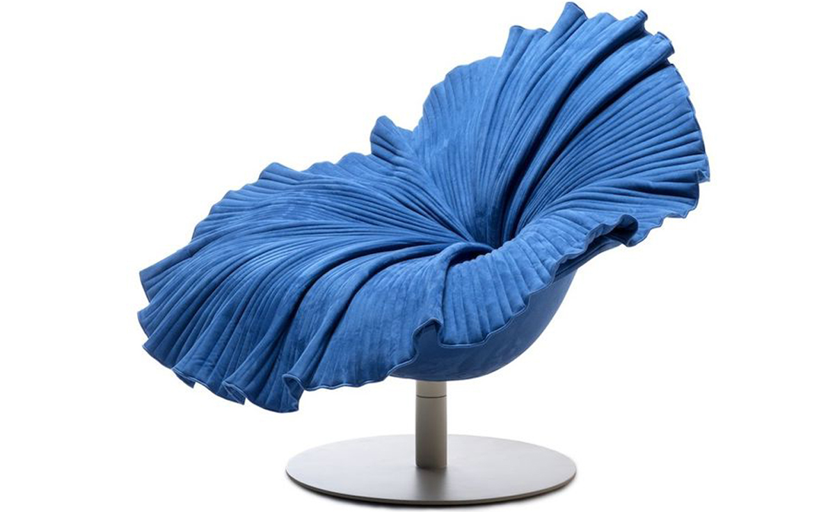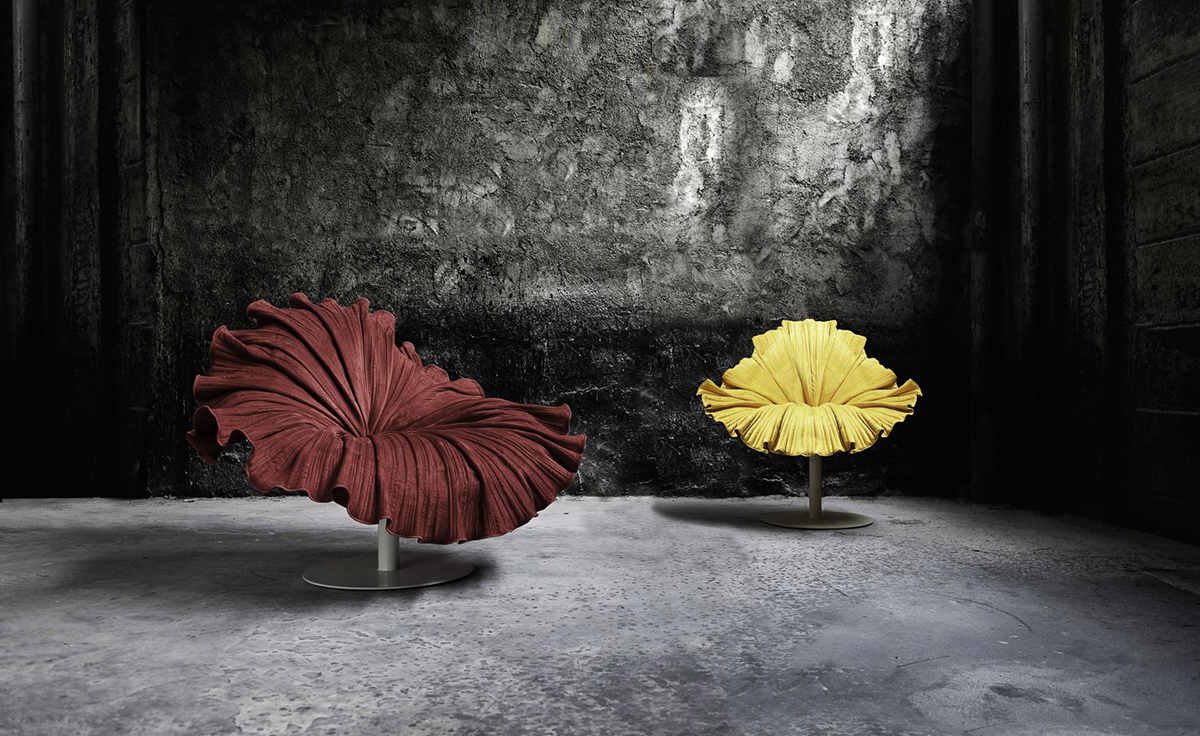 菲律宾设计师 Kenneth Cobonpue 设计了此款子名叫「开花 (Bloom) 」的椅子(Bloom Easy Armchair)。拟态一朵花盛开的模样,采用纯手工工艺将微纤维织物缝入碗状树脂椅座上,听起来就觉得很有科技感对吧,椅子下面的圆盘基座由钢铁制成,所以产品本身是十分的牢固安全的。
