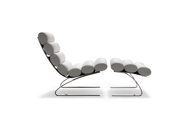 Reinhold Adolf & Hans Jurgen Schropfer为德国著名家具公司Cor设计了一款名为鼻窦系列的家具,这系列家具包括Sinus Lounge Chair(鼻窦躺椅)、Sinus Lounge Ottoman(鼻窦休闲脚踏)及其组合Sinus Lounge Chair and Ottoman(鼻窦躺椅&脚踏)。躺椅造型就像一只只圆形的鼻窦组合在一起,材质是不锈钢框架椅身、进口皮革扪面、软包内部填充进口海绵,躺着上面非常的抒情惬意。