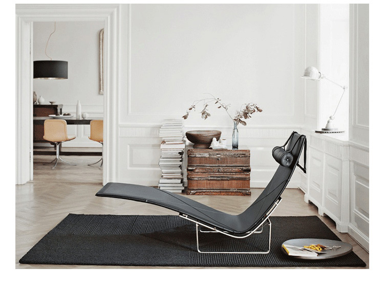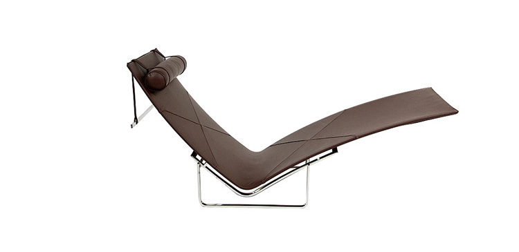 PK24 Chaise Longue Chair(PK24休闲躺椅)是著名的设计师 Poul Kjaerholm设计的经典作品,是Fritz Hansen公司的“Poul Kjaerholm系列”之一。 PK24躺椅(PK24 lounge chair) 是一款经典设计,功能结构的底座结合优美悬浮的座位,椅子的主要部分没有物理上的连接,但并没破坏整体设计的平衡和稳固性。覆盖牛皮的座垫包装了舒适的躺椅特征。带有曲线的不锈钢架为座垫提供了稳固的支撑,同时带来艺术美感。