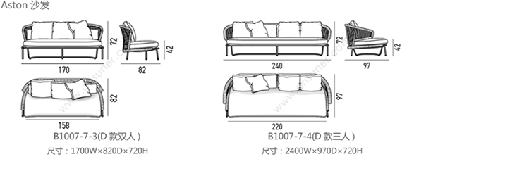 Aston 沙发 系列尺寸/示意图