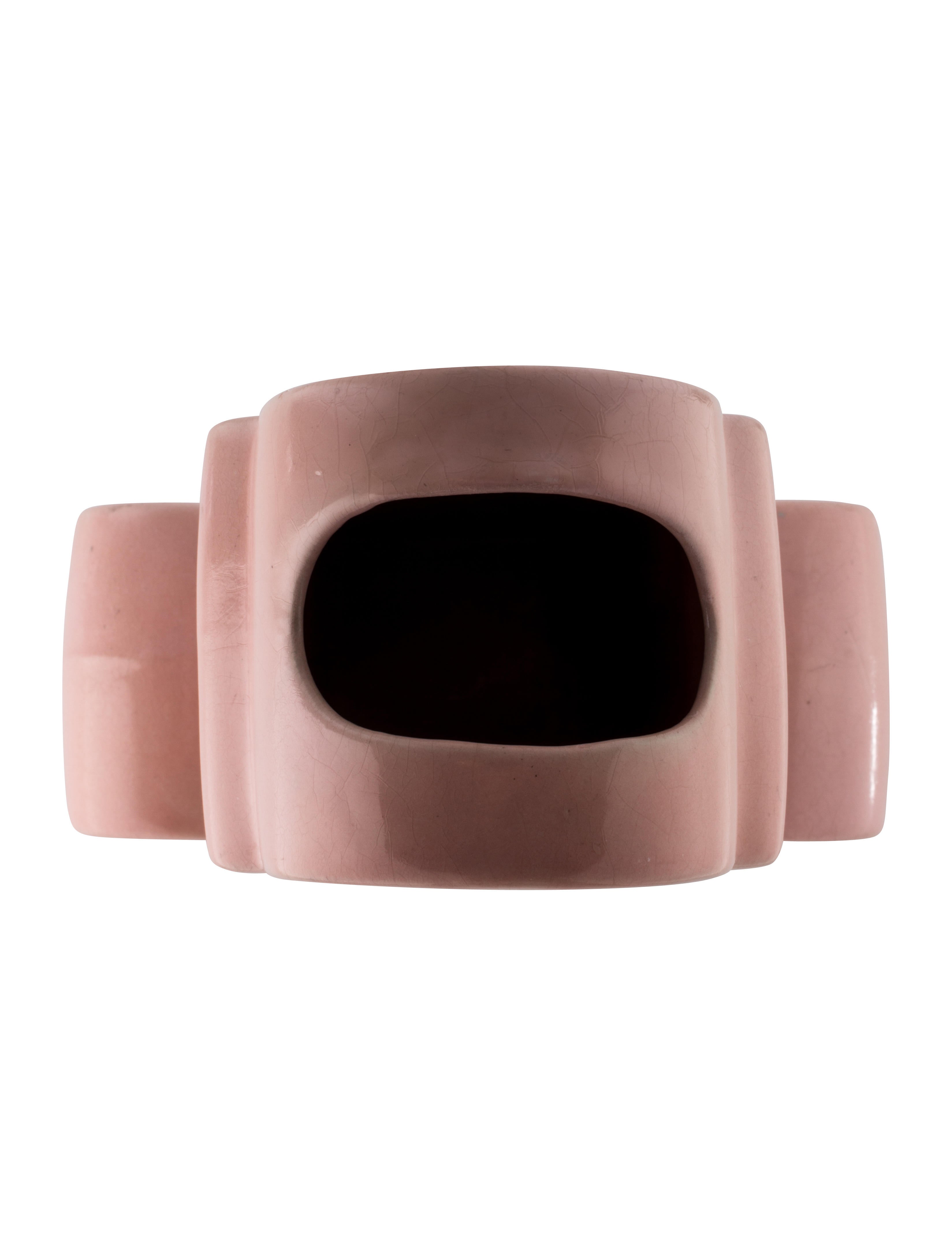 粉红釉面陶瓷。“我继续生产小型,小型,小型建筑,例如这种陶瓷作品,有点像古迹,有点像坟墓,有点像废弃的寺庙。诸神,有点像古代和未知文明的废墟,其中有人说过话。据说他们了解轴,曲线,相交点,甚至是宇宙物体路线的因果关系,每天都沿着这些轨迹滑动构成我们脆弱的肉体和血液的原子的私有顶点。”杰出的人物在Bd的第一个目录中推出了设计花名册。孟菲斯已经十年没有出现在现场了,但是Ettore Sottsass那时已经去过印度十年了。他的“小建筑”,例如这个花瓶,