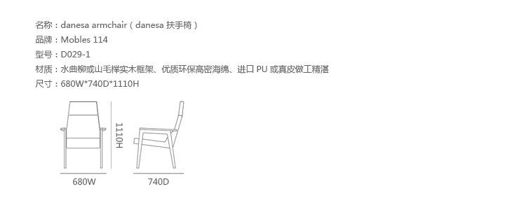Danesa Armchair(Danesa 扶手椅)是一款北欧风格的扶手椅,适用于等候区、图书馆阅读室、医院或者行业区域。制作采用水曲柳或山毛榉实木框架、优质环保高密海绵、进口PU或真皮做工精湛。