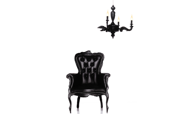 "Pieces of furniture are literally burned,after which they are preserved in a clear epoxy coating.The beauty and character of burned wood is now captured in a long lasting material, creating the strange sensation of sitting on burnt furniture.Maarten Baas is a Dutch designer who graduated from Design Academy Eindhoven in 1996.In 2000 he studied for several months at the Politecnico di Milano. In June 2002 he graduated at the Design Academy a series of burned furniture called "Smoke".Maarten is searching for the boundaries of design,without leaning on the regular"do's and don'ts".The Smoke series includes armchair,dining chair and chandelier. Each item from the Smoke series share the unfamiliar and untamed finish that is categorized by fire.Each piece is unique and may differ due to the process used for production.The smoke chair is upholstered in black leather and has a secret repair kit underneath the seat in case of emergencies."