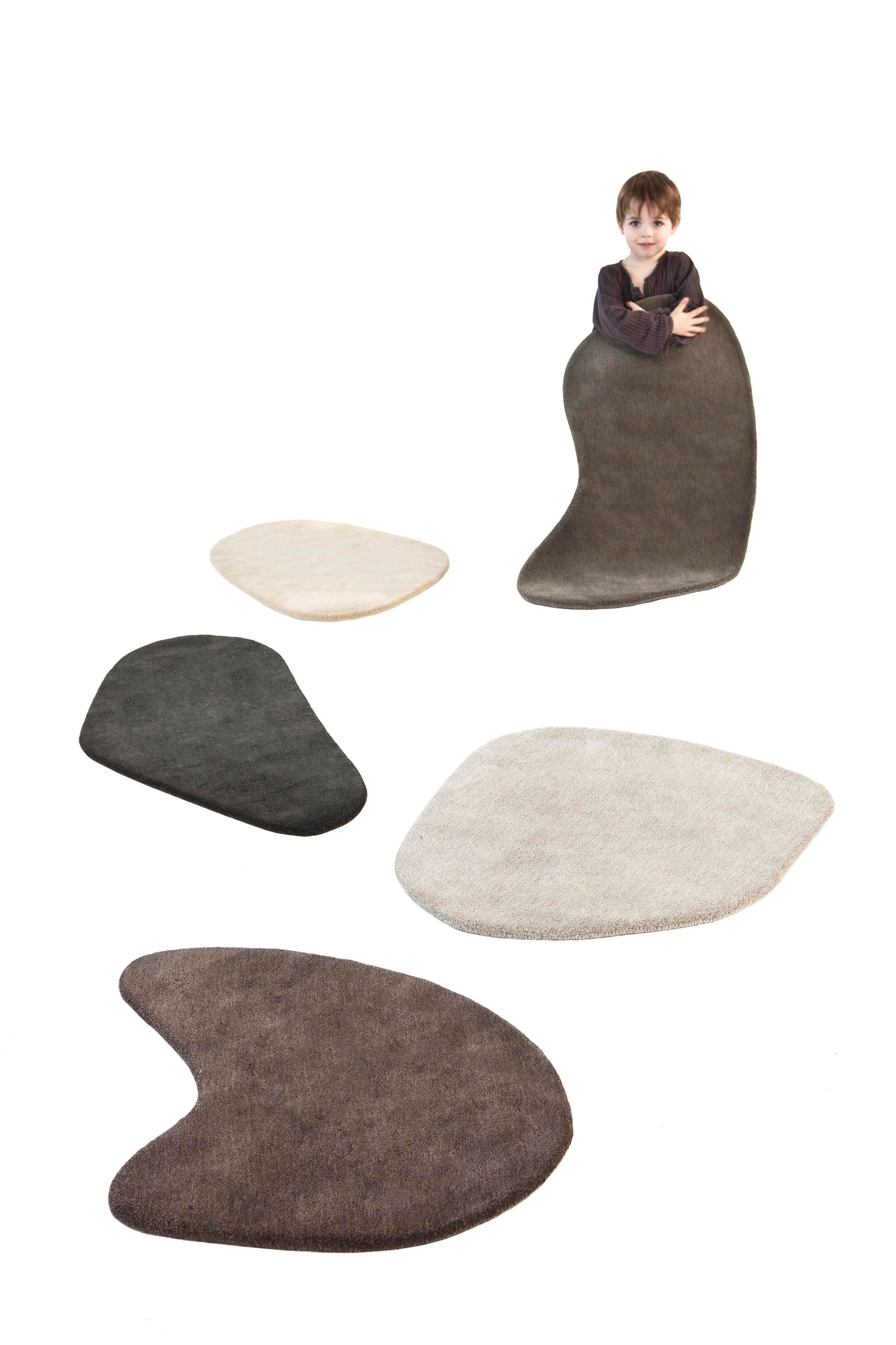 “石羊毛”系列的地毯创造了一个光滑卵石的河床,以适应长廊。不规则的轮廓和颜色为室内设计提供了无数的组合,充当了想象中的河流的垫脚石。