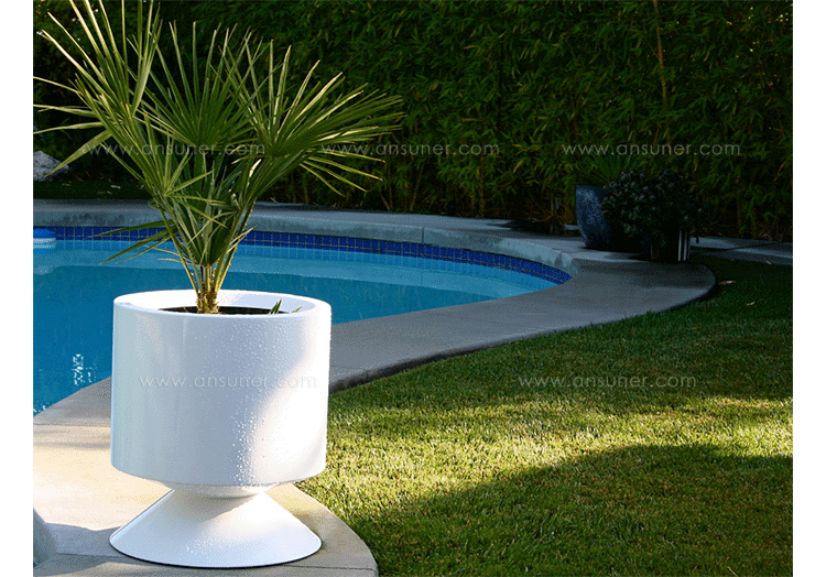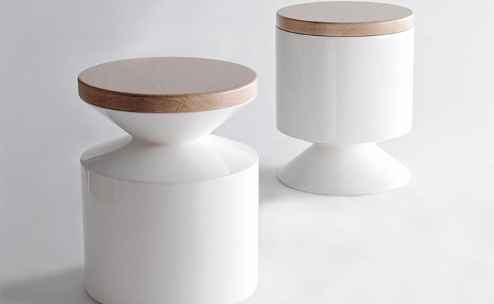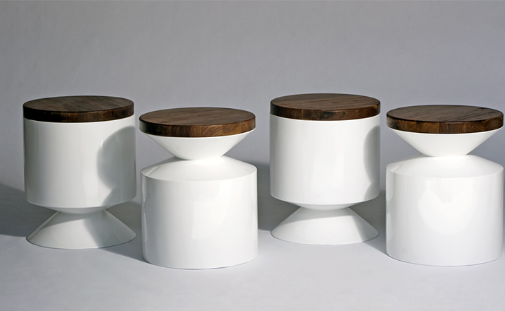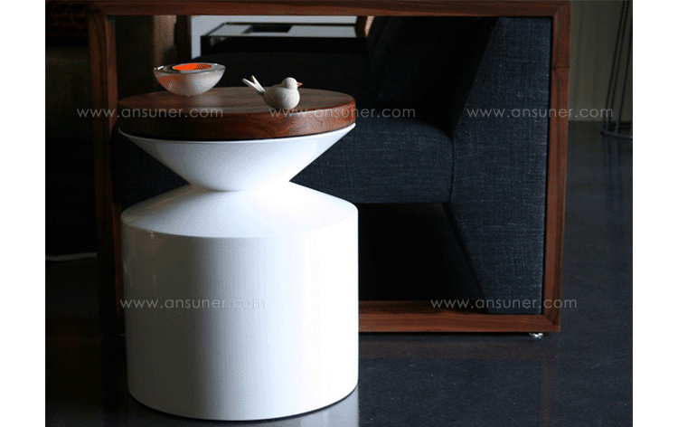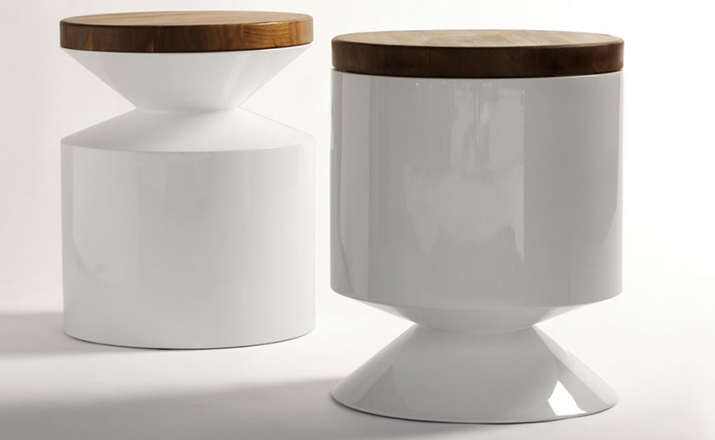 This versatile piece works interchangeably as a side table or stool.Made from a hand sanded fiberglass shell and finished with a high-end automotive polyurethane gloss finish,it is lightweight and durable.The 1.5 solid lumber top tempers the clean architectural form with its warm organic presence.The wooden lid can be sourced on either side at time of order. Indoor use only.