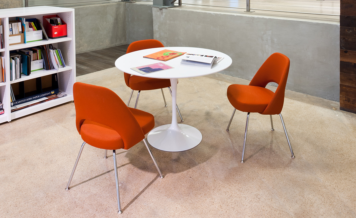 Tulip Dining Table(郁金香餐桌)是芬兰裔美国设计师Eero Saarinen在1956年设计的作品。优雅、清秀的桌脚配上天然的大理石桌面,极简却又完美。Tulip Dining Table(郁金香餐桌)是现代餐桌的代表作,作为家庭中使用餐桌、高档饭店中的餐桌和酒店中使用的餐桌都非常合适。作为著名家具设计师设计的作品设计品位自然不会低,这种餐桌设计出来的时候就被广泛的运用到了饭店、酒店和家庭中,成为当时最热销的餐桌之一,餐桌主要材料是玻璃钢(可选大理石),整张桌子是采用一次成型,中途不会出现裂缝,有质量保障,桌面平滑不会凹凸。