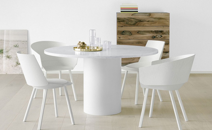 Mainzer 的hiroki dining table(hiroki 餐桌),Philipp Mainzer的作品,设计基于他成功的金针菇边几系列,hiroki 餐桌更像金针菇边几的改良版,加大了台面宽度,减小了立柱直径,使之成为合适的餐桌。造型和选材都与金针菇边几一样,还扩大了新材料的运用,采用天然大理石或中纤板贴木皮台面、台脚为全实木(颜色多选)Hiroki 餐桌旁钢圆柱基础有十一种涂漆颜色可选,包括信号白、乌黑,交通灰色、淡蓝色、绿色、棕色,蜜黄色、影灰色、薄荷绿、海军蓝色、米色红色,火焰红等。