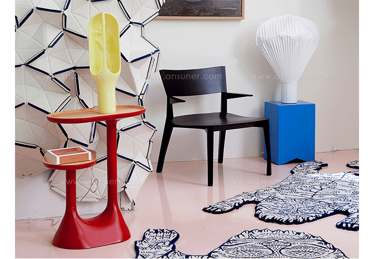 swivel coffee table(旋转咖啡桌)是法国设计师 Ionna Vautrin 设计的产品,身边朋友只要看过Ionna作品的人无一不喜爱,造型简洁饱满,带有强烈的拟人特征,可爱而有趣,Ionna将这种童话般的设计语言带入到我们日常生活的物品设计中,本来以为这样的造型应该只会在画册中出现。swivel coffee table(旋转咖啡桌)有两个旋转托盘,设计造型灵感来源于非洲的猴面包树︰渐狭成突破由纵向的叶子的不同分支承受了巨大压力。旋转咖啡桌由漆石灰木制成,两个旋转盘位于不同的高度,相互交错。可以将它放在沙发旁,或者作为床头柜,或者房间入口处,独特的设计和造型使得它能够适合不同的房间和环境。