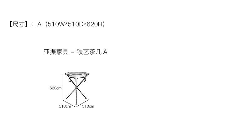 亚振家具 - 铁艺茶几 产品尺寸/示意图