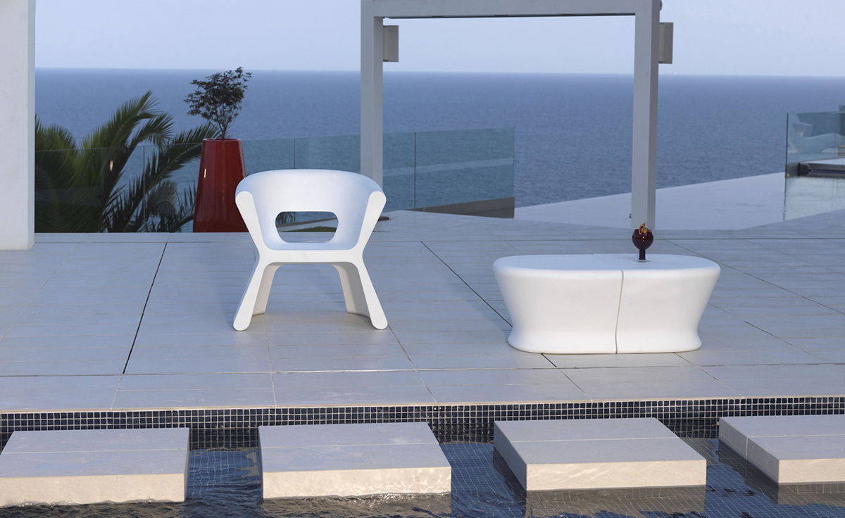 PAL,是美国设计奇才KARIM RASHID 为西班牙品牌VONDOM设计的最新产品。 PAL,就如它的英文的意思 - ¨好友¨,一个友善的,有动力的室内,户外椅子,桌子和凳子系列。 它的凳子是多功能的,将它翻过来,它就变成了一张桌子,将两张放在一起,它就成为了一张更大的 桌子。在它旁边中间的位置有一个洞,是用来存储东西的。 这个反传统的,现代感的系列有一个很类似的共同点 - 自然质朴的流畅线造型。 PAL 是唯一的,是低分子塑料和旋模技术的结晶。