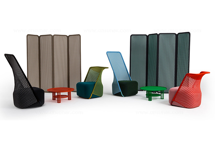 “摇篮”是两种类型座位的独特组合;一个网状结构吊床和一个传统的软垫沙发椅。扶手椅源于工作室的材料驱动、工艺主导、工业设计方法、网格材料的构建研究,以及传统座椅组件之间的关系研究。“摇床”采用了一种定制的剪裁模式,允许非弹性织物以三维的方式进行。这允许正确的张力,舒适地支持身体和视觉上和身体上减少产品的重量。