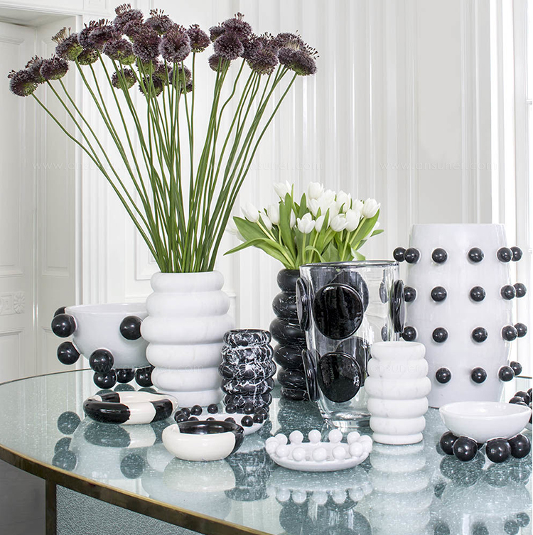 这是一款独特的白色陶瓷餐具,配有大型乌木装饰球,边缘饰有令人兴奋的细节。 从Noir和Blanc系列的大盘中嵌入,但也可作为独立的作品。 非常适合娱乐或在咖啡桌上。
