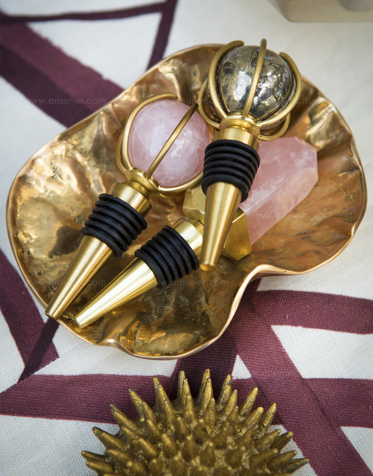 这款实心黄铜葡萄酒塞在洛杉矶手工雕刻,与Kelly's Acolyte系列酒吧和娱乐用品相得益彰。