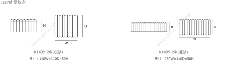Laurel 罗纹盒 系列尺寸/示意图