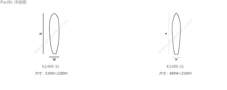 Pacific 冲浪板 系列尺寸/示意图