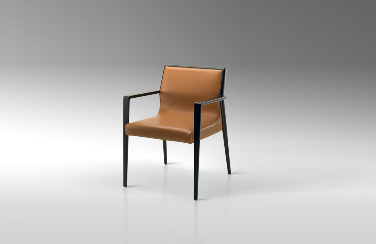 The Nairobi armchair Lounge version has a solid-wood structure stained dark brown and has been reinterpreted in traditional, harmonious and fluid cabinet-maker style without any interruptions in shape.