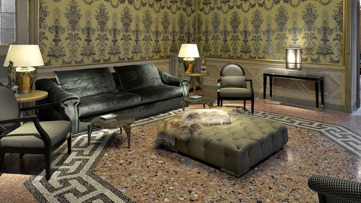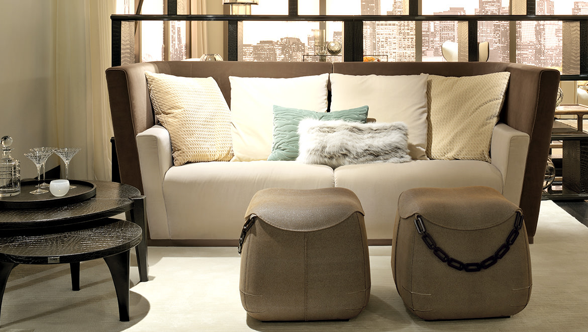 Parchment ivory colour glossy finishing or Emperador Dark marble, wooden feet covered in Allia leather