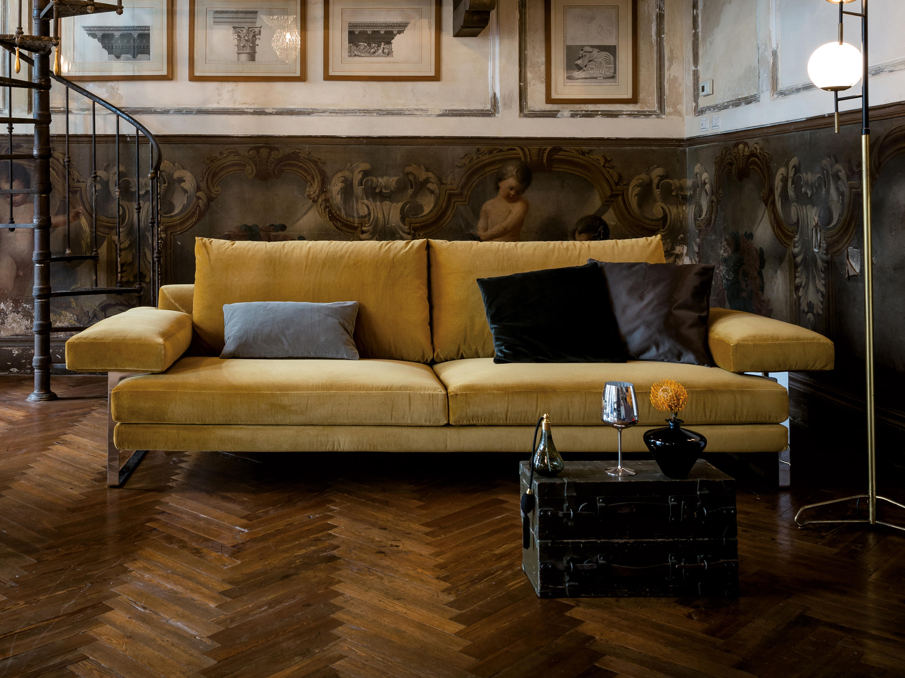 雕刻的几何线条赋予了它巨大的个性和独特的风格和最大的舒适感。超大号的座椅,后背和扶手都非常柔软。自我是20世纪80年代的沙发概念的最新阐述。脚,可在镀铬或云母褐色的金属上,支撑着宽阔的扶手。