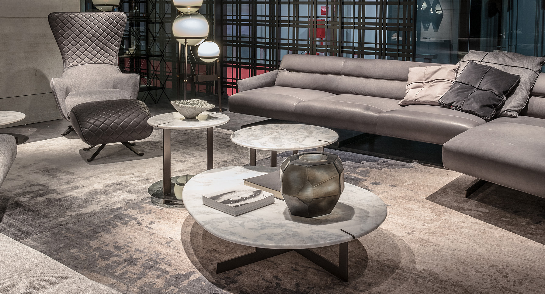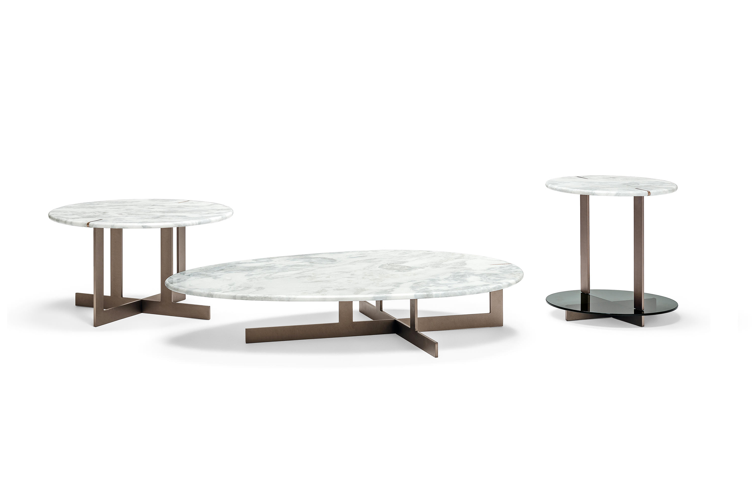 道格拉斯是一个由金属、大理石和玻璃组成的茶几系列。这些桌子可以围绕在沙发周围,因为它们可以放在前面、后面或侧面,可以用作茶几或边几。
