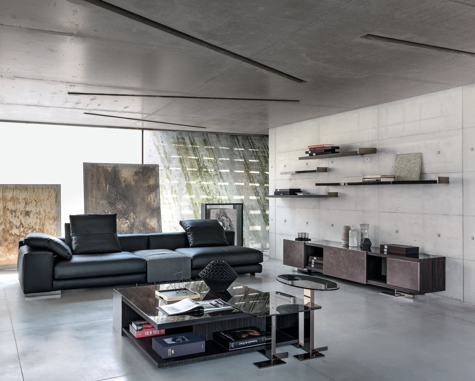 这些小桌子的外形很有吸引力:不同寻常的对比,柔软的和刚硬的组成部分共存,传达出和谐的、国际化的风格。它们可以像小行星一样被放置在房间里。有三种桌面可供选择:圆形、方形和长方形,桌面材质为大理石或砂岩,也有钝边的熏玻璃桌面。金属基材有云母棕,氧化灰或黑镍。